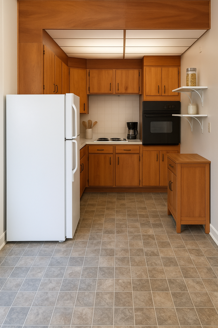 - Large kitchen and appliances