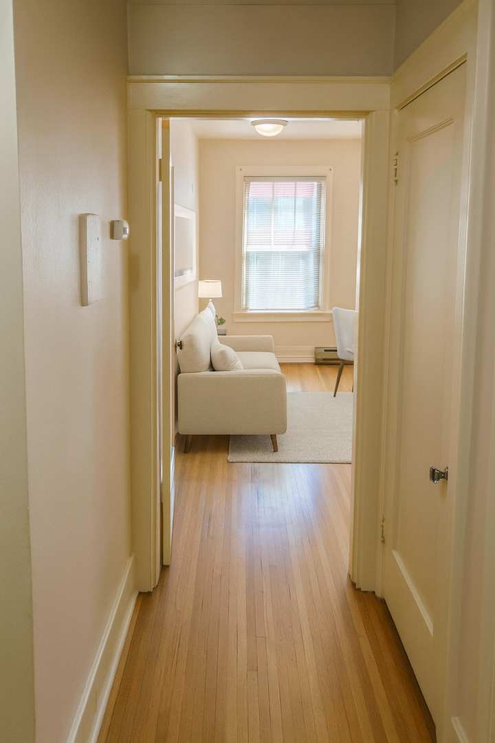 Welcome to the Wellesley! Our beautiful vintage community was built in 1925, and retains its vintage charm. Hardwood floors run throughout the living spaces with brand new lighting as well. Coved ceilings accent the architecture of the building with original light fixtures, plaster walls with picture rail and plenty of other original fixtures and woodwork. The bathroom of this unit is one of the largest in building, complete with soaking tub, pedestal sink and original built in cabinets. The kitchen is retro and spacious with a beautiful tile mosaic backsplash, new appliances and plenty of storage space in the cabinets.
