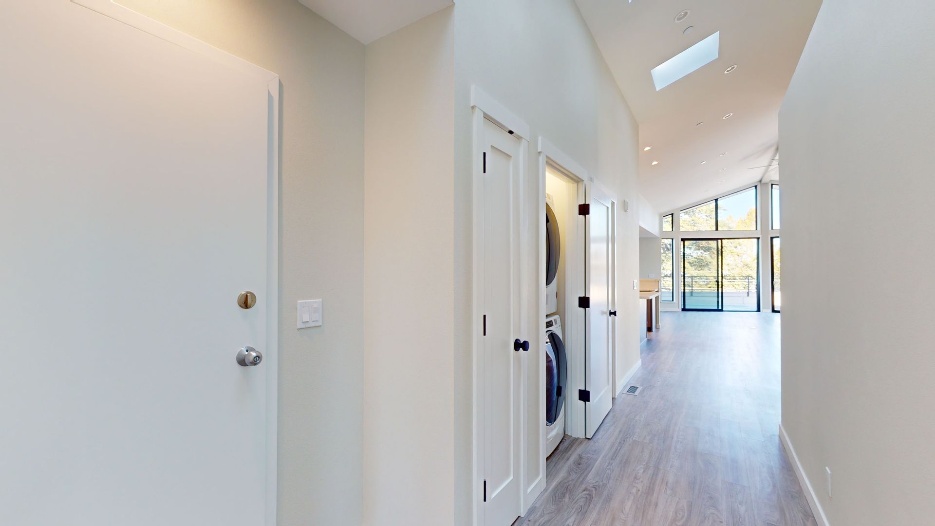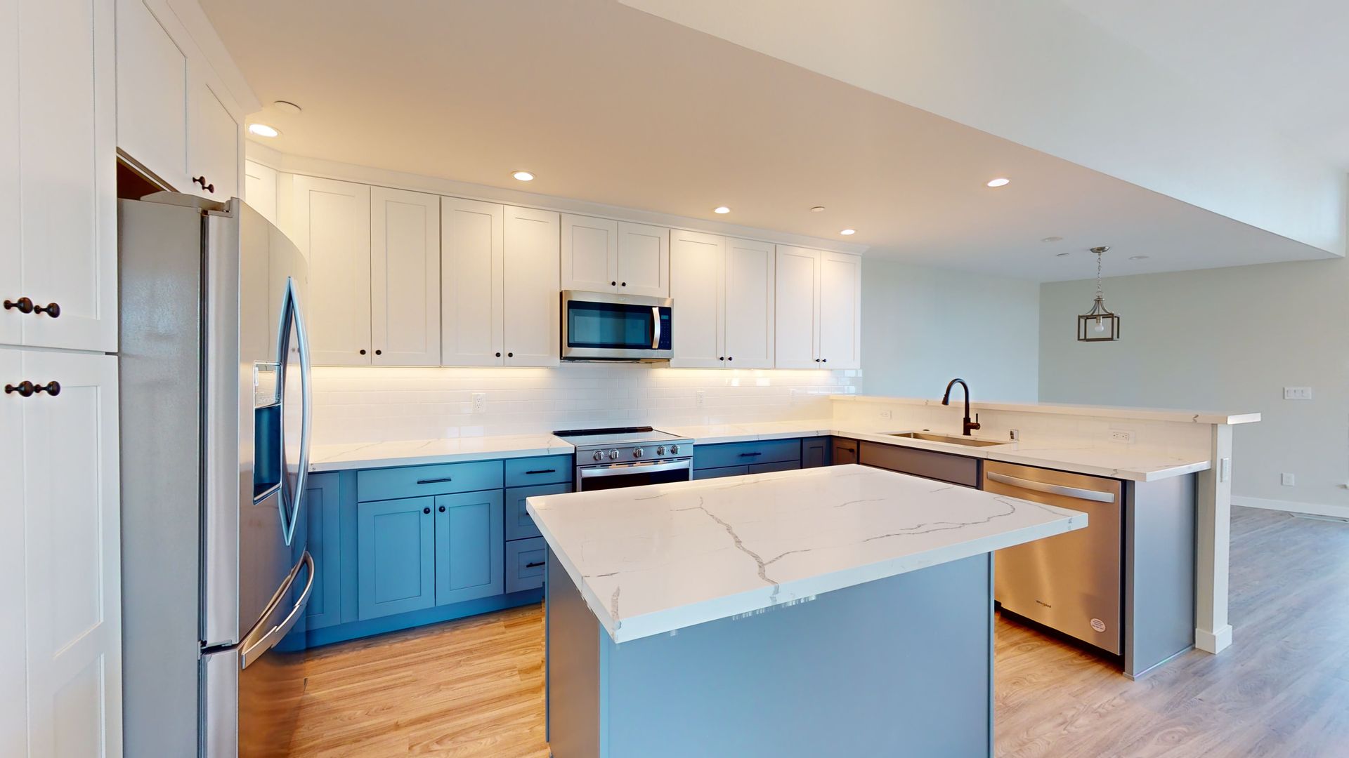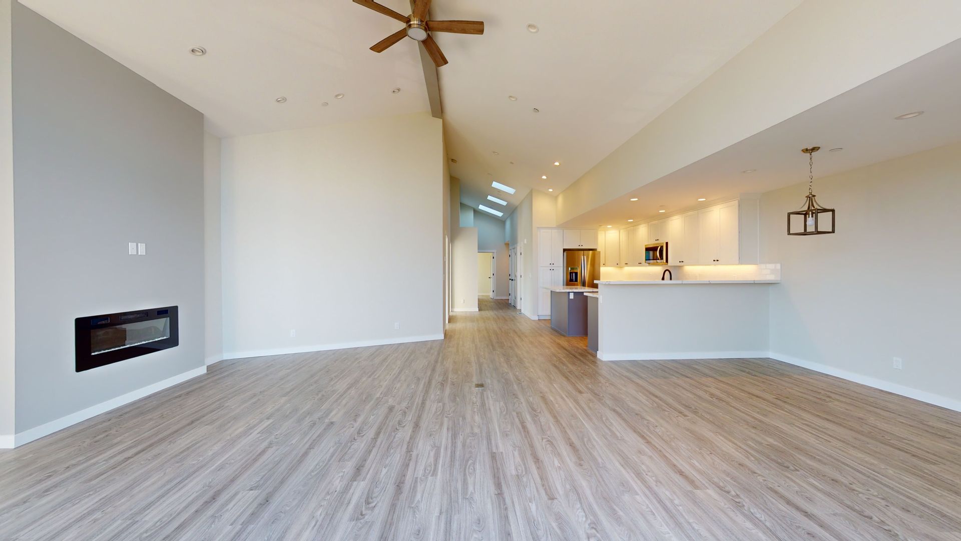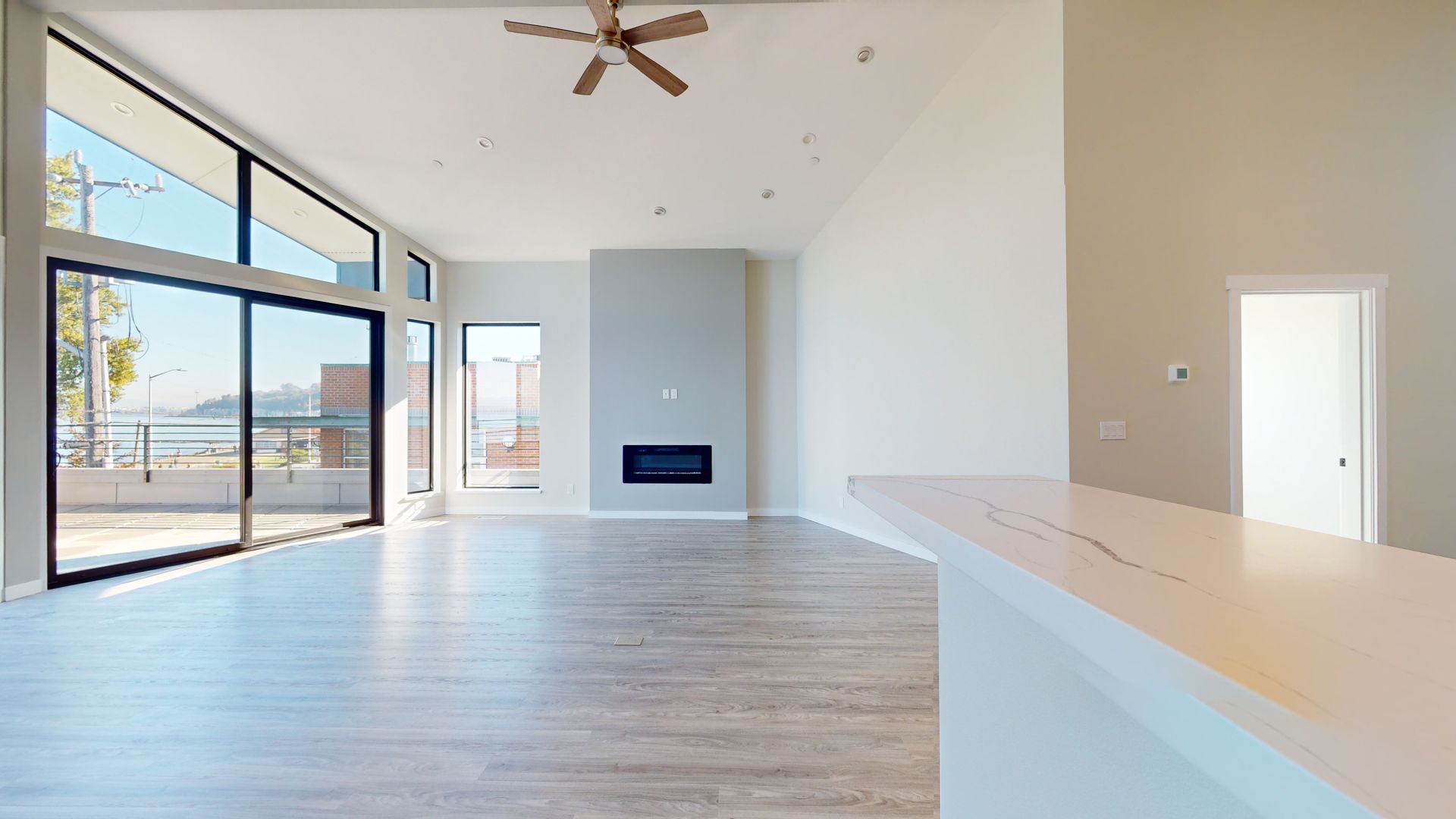 This remarkable penthouse presents a secure two-car garage, ensuring both convenience and peace of mind. Inside, a chef's kitchen awaits, equipped with top-tier appliances that inspire culinary creativity. Warm up by the electric fireplace on cozy nights, and enjoy the convenience of a full-size washer and dryer right in your unit. Experience year-round comfort with forced air conditioning and heating, while vaulted ceilings exude a sense of grandeur.