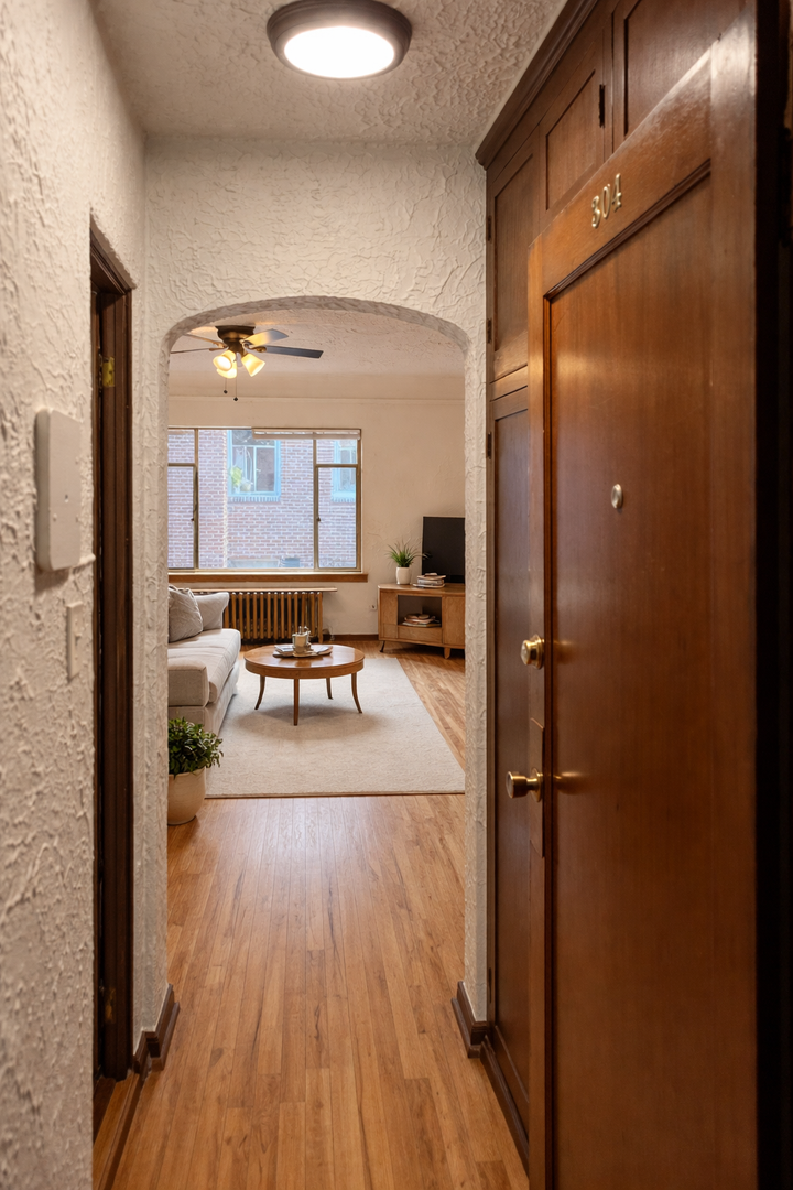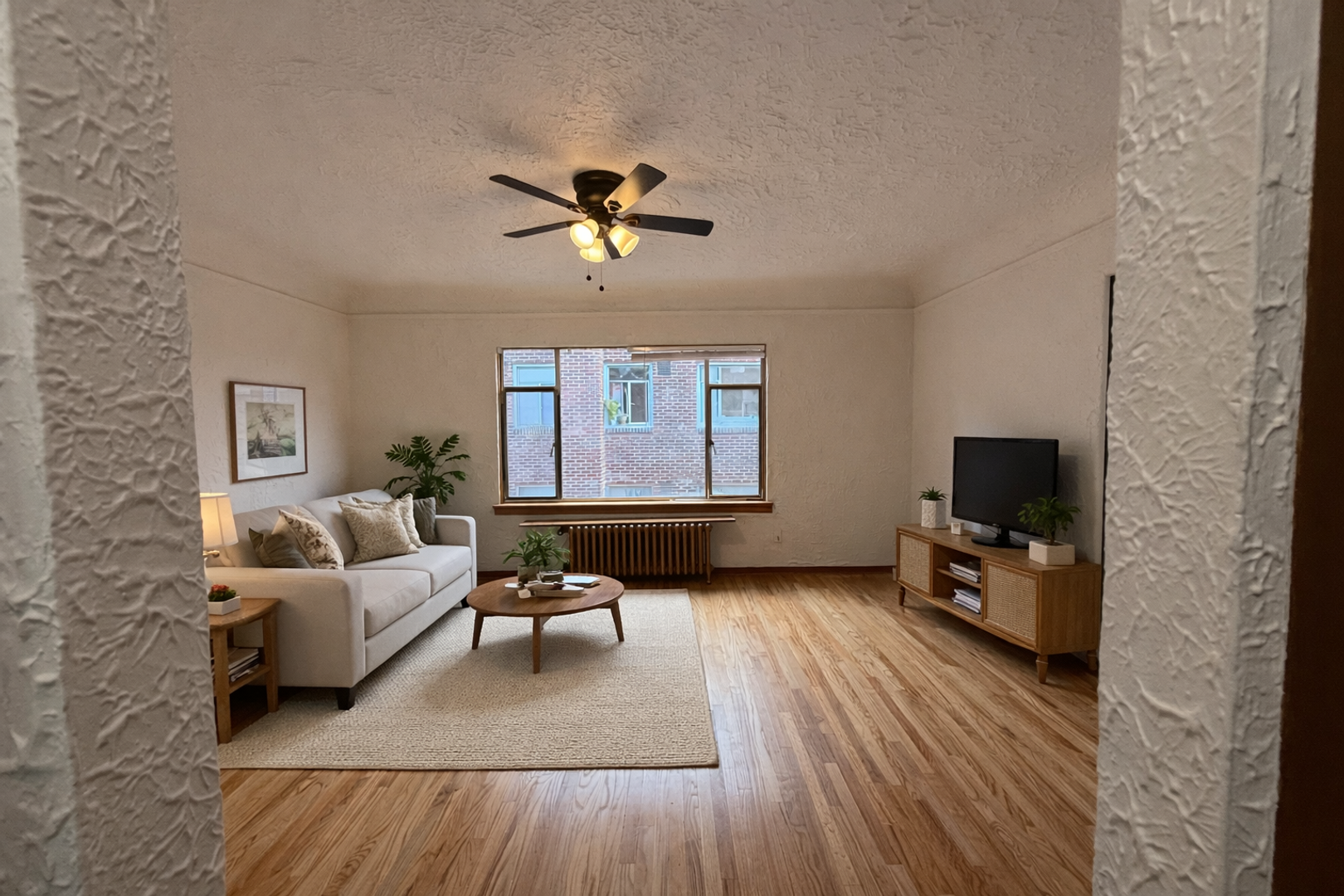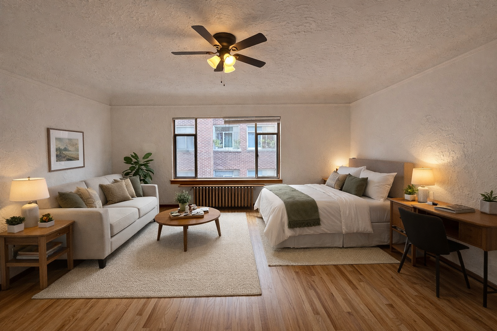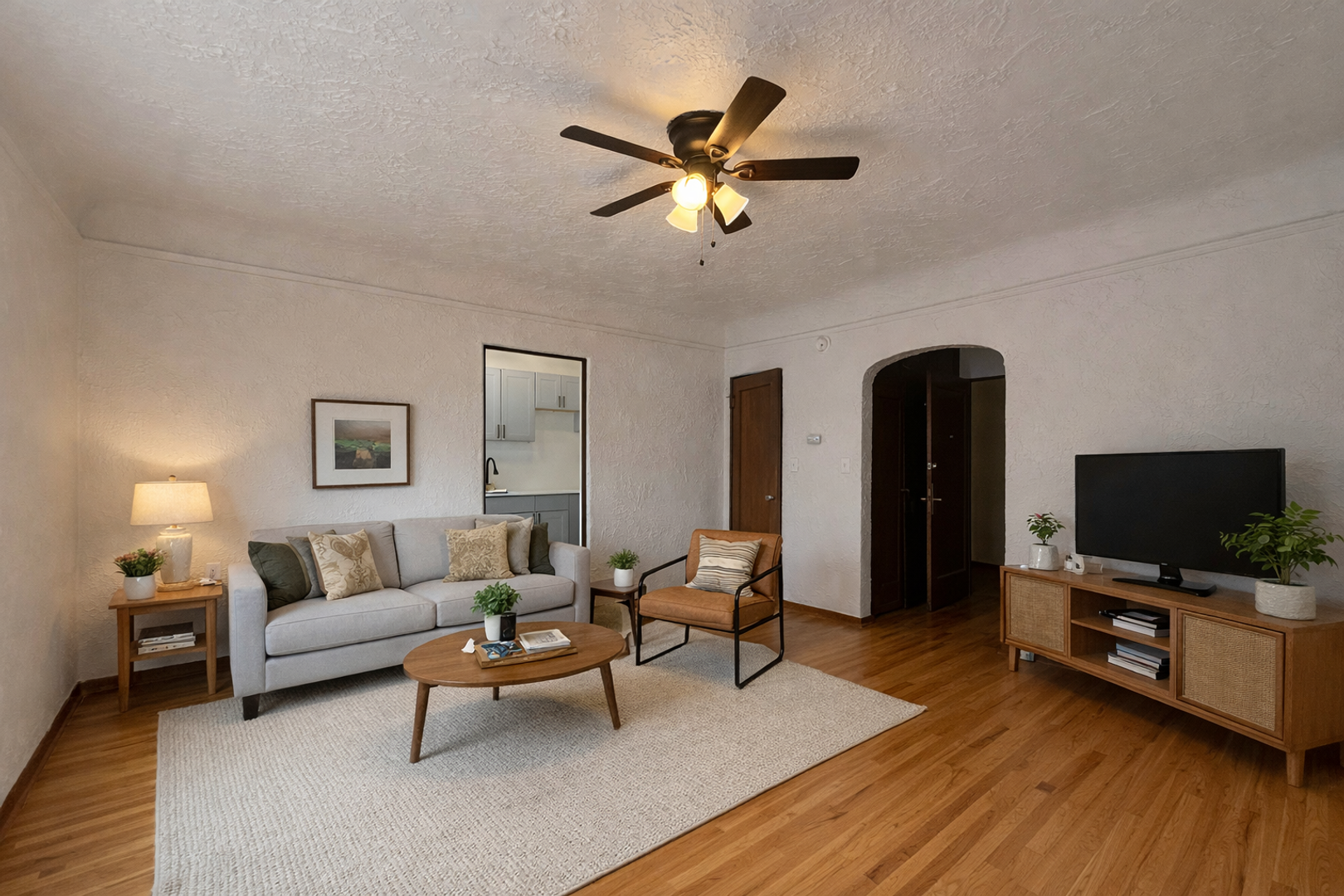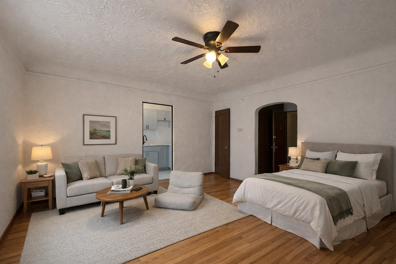 Thoughtfully remodeled studio in an iconic Wallingford building. This charming 1920s building blends vintage character with modern updates. New kitchen cabinets and appliances complement the genuine hardwood floors, coved ceilings, and classic period details throughout.