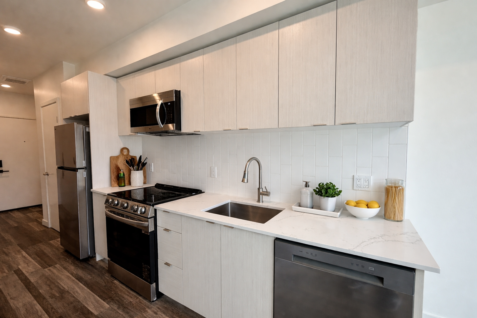 The kitchen is fully equipped with new stainless steel appliances, including a dishwasher, full-size oven/range, and refrigerator, everything you need for easy, modern living. Private balcony, ideal for enjoying neighborhood views or unwinding after a long day. For your convenience, the unit also includes an in-unit washer and dryer.