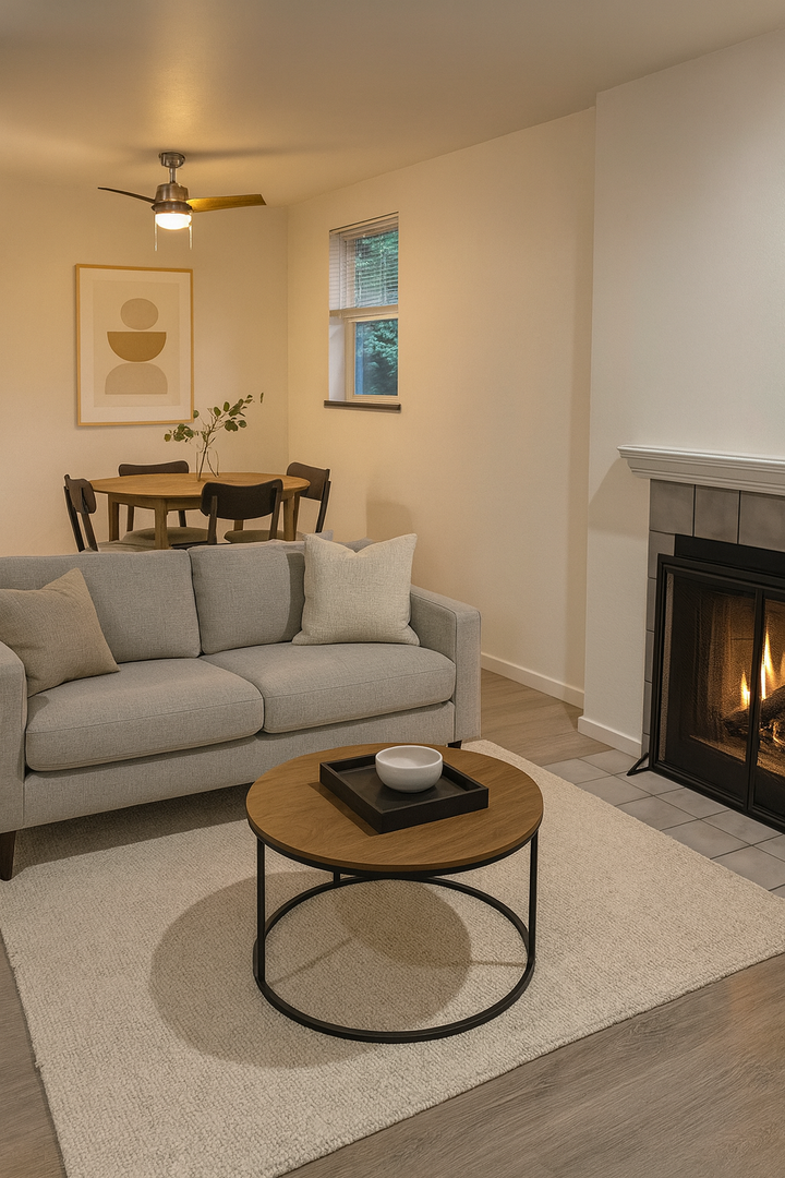 Welcome to your newly upgraded, fully renovated 1st floor 2-bedroom apartment home in the heart of Seattle, WA. This corner unit offers a unique blend of comfort and convenience with a private patio/balcony for your enjoyment. The apartment features a wood-burning fireplace, adding a cozy touch to your living space.