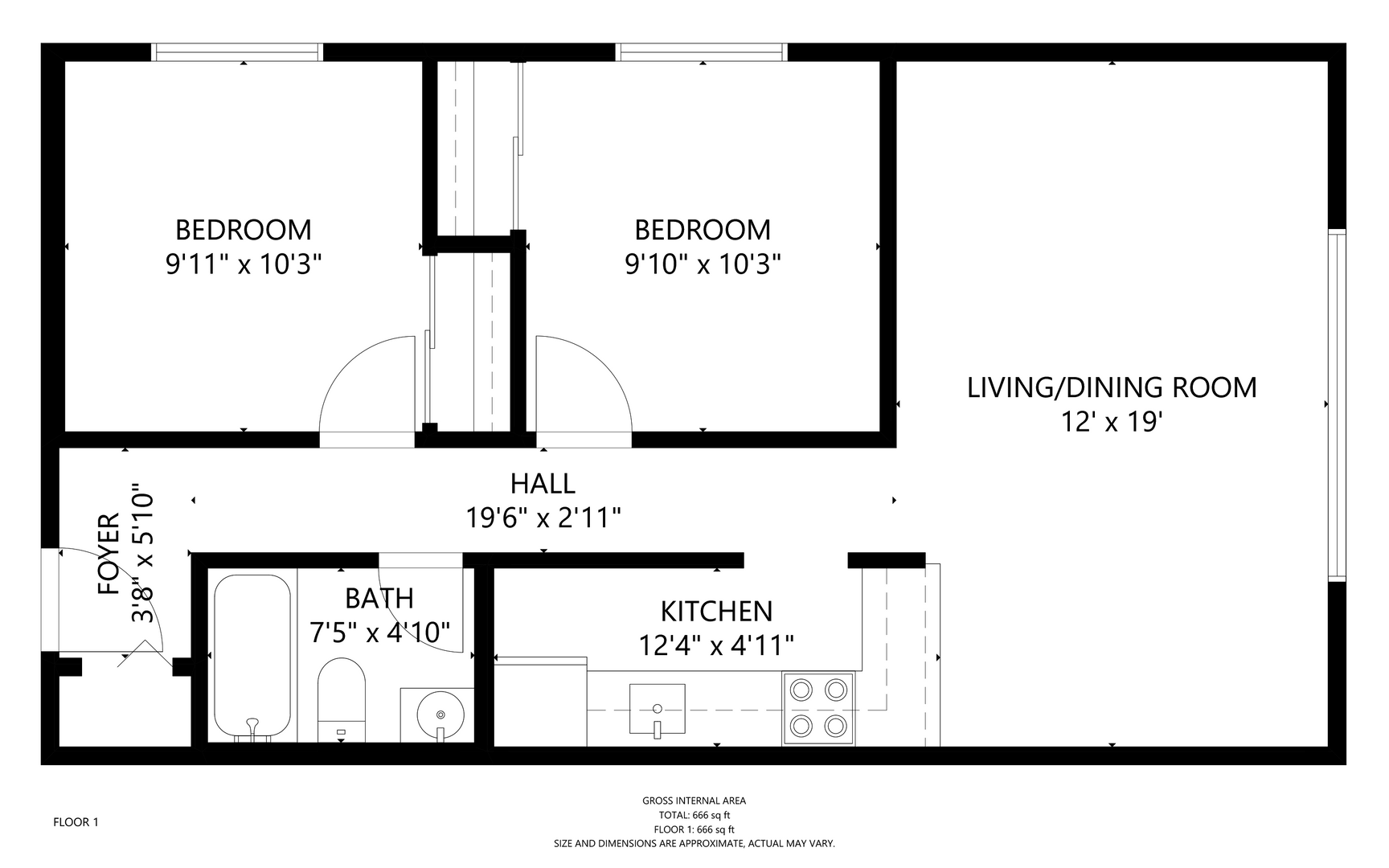 2 Bedroom / 1 Bathroom (750 SqFt)